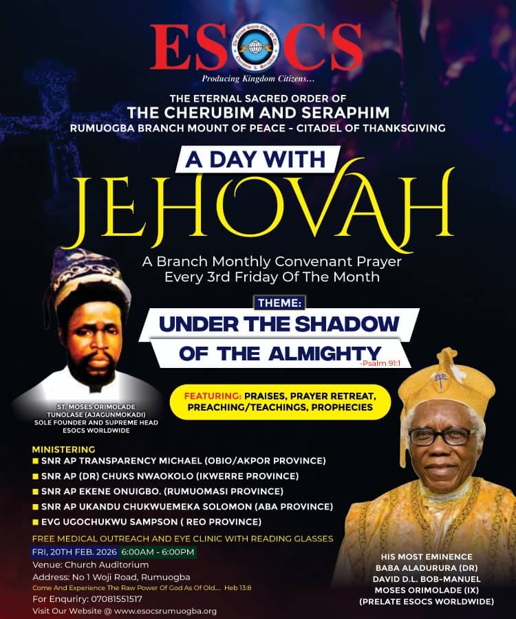For sponsorship and partnership in our third Friday branch covenant/monthly prayers pay into ESOCS PARTNERSHIP SCHEME Firstbank account number 2034650257